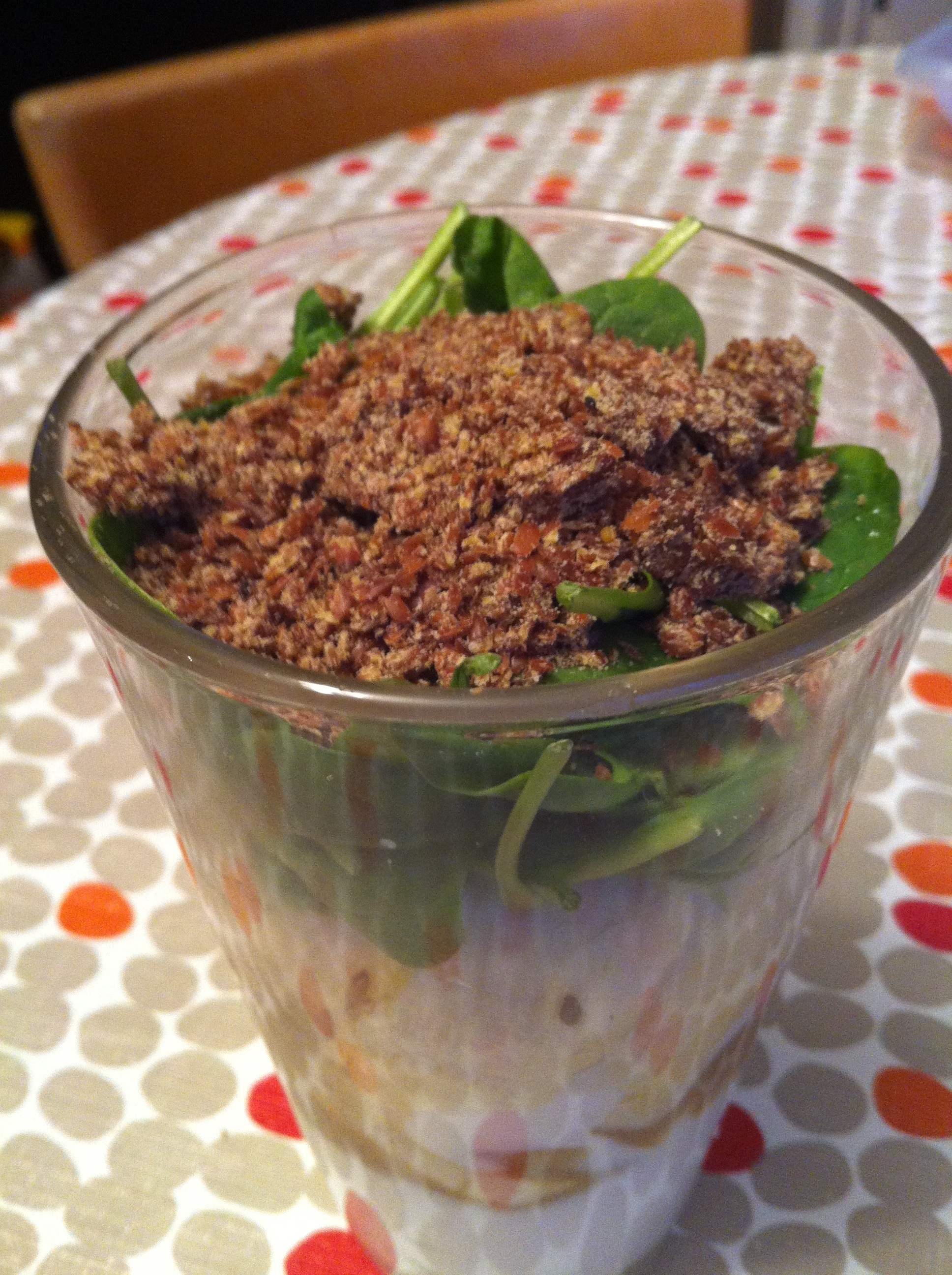 1 Tablespoon flax seeds (I use a version that is already pre-ground) (flax is a great source of Omega fatty acids)